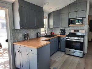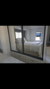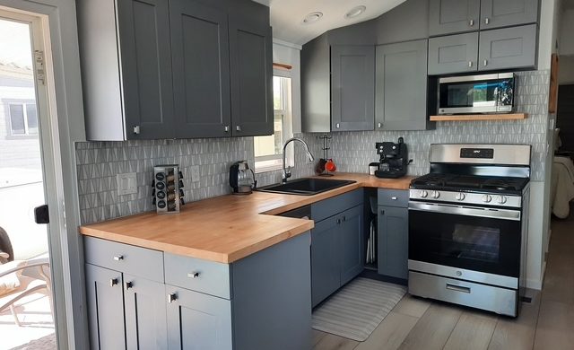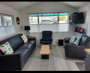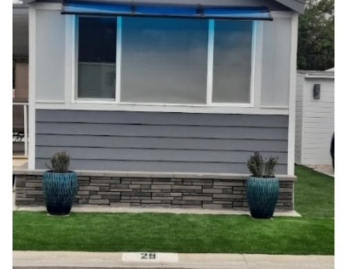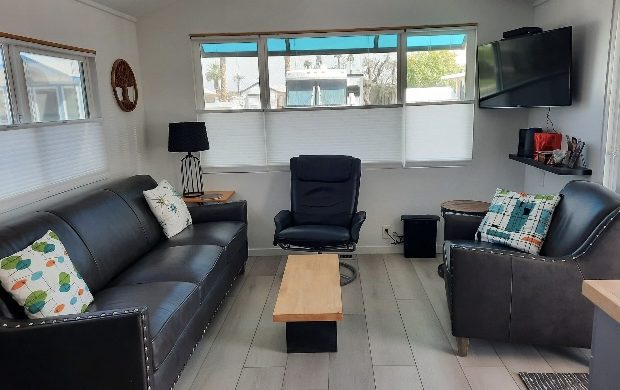 Lot 29 on the Desert Aire West wall is available for a 5 month rent from Nov. 01, 2025 – Mar 2026. This park model has been completely rebuilt inside and out. Bathroom has a walk-in shower, new vanity and plenty of storage. All appliances are full size and stainless steel. The addition of an 18″ ‘bed bay” contains a king size bed with walk access on each side of the bed. The park model has a full size AC heat pump. Outside there is a 420 sq ft of covered deck, low maintenance artificial grass, 8′ x 10’ shed with a dryer and new washing machine. Fully furnished and equipped.