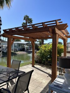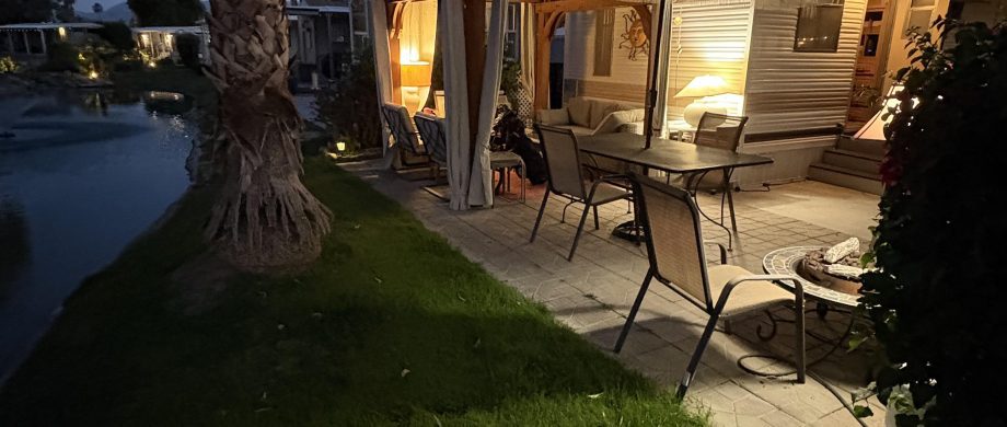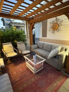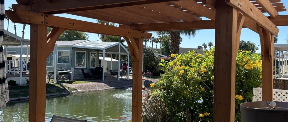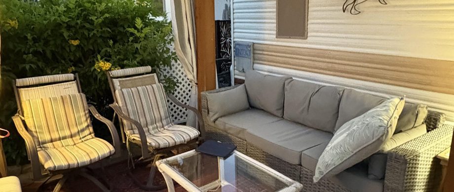 Unit 243 on side B, is available for sale. The unit is comfortable and very well equipped with everything you need, move in ready. I have added a pergola at the back facing the quiet and relaxing water way to relax in and read or entertain. There is a large outdoor patio table and chairs, outdoor gas firepit, barbecue, storage shed and parking for one car. It’s a cozy private spot to relax and enjoy the nicely landscaped backyard which has a large grapefruit tree, Bougainvillea shrubs and yellow Trumpet Flower hedges.