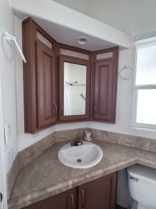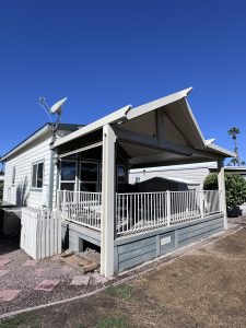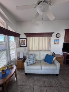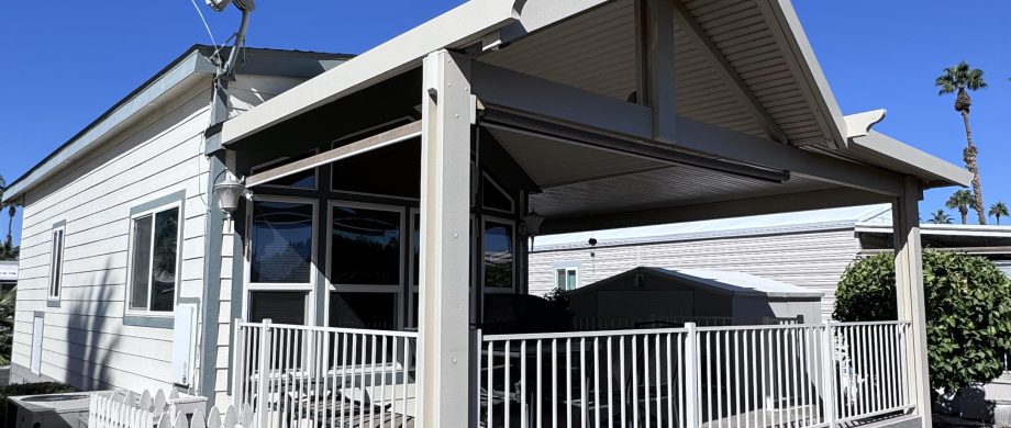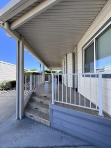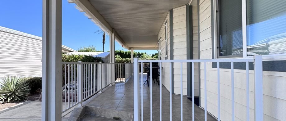Walk outside and enjoy the large patio providing cover on two sides of the park model and has all of the outdoor furniture you need to relax and entertain.