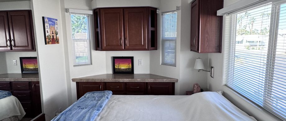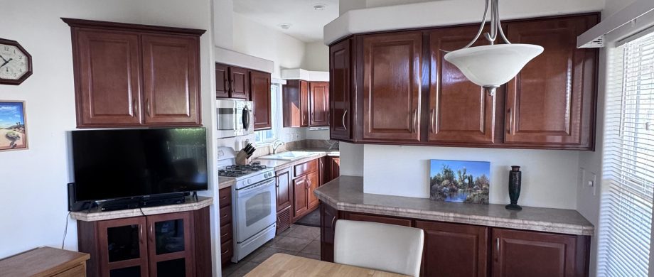 If you are looking for a great deal on a park model in Desert Aire, then you need to schedule a showing for this one. Beautiful 2012 CAVCO is located on the east wall providing lots of privacy and close to the main club house and steps away from one of the swimming pools, laundry facilities, bath rooms and showers. This park model is tastefully decorated and includes some very nice art which is included along with all of the interior furnishings. All of the kitchen and bath ware is also included and makes this park model move in ready or ready to rent. This park model offers tall ceilings and is bright and airy. The living room is perfectly set up with a large flat screen TV. If you like to cook, you will enjoy the advantages of a full size gas range.