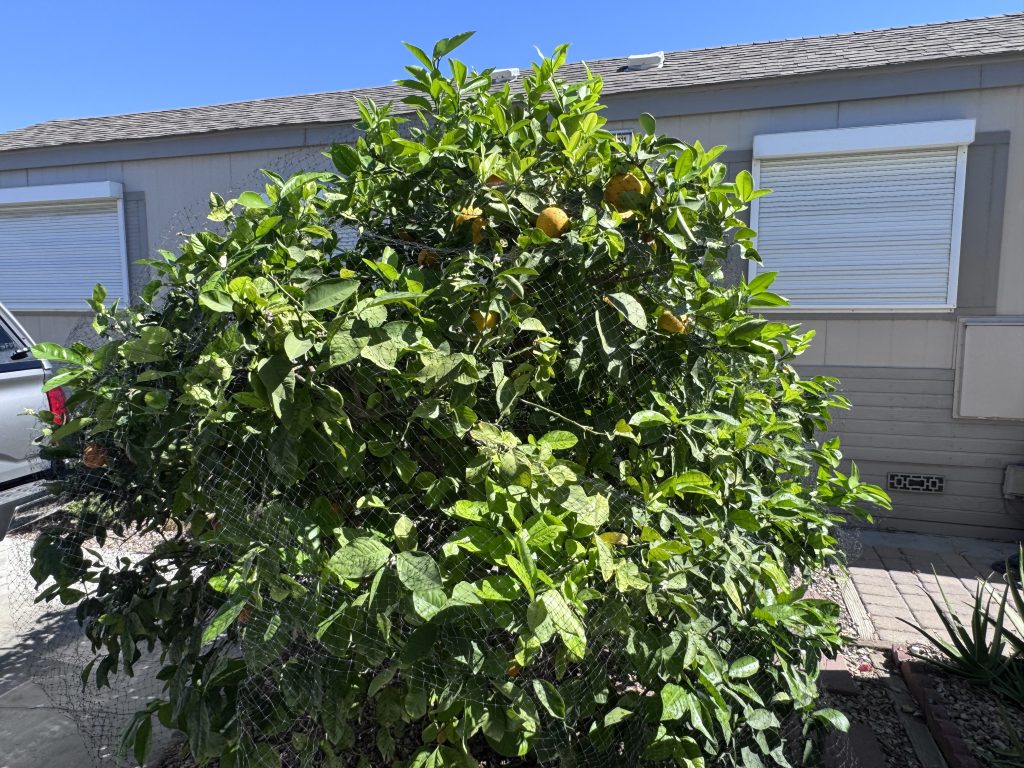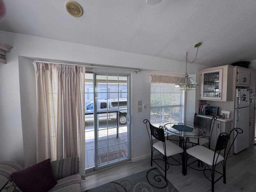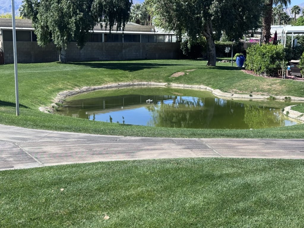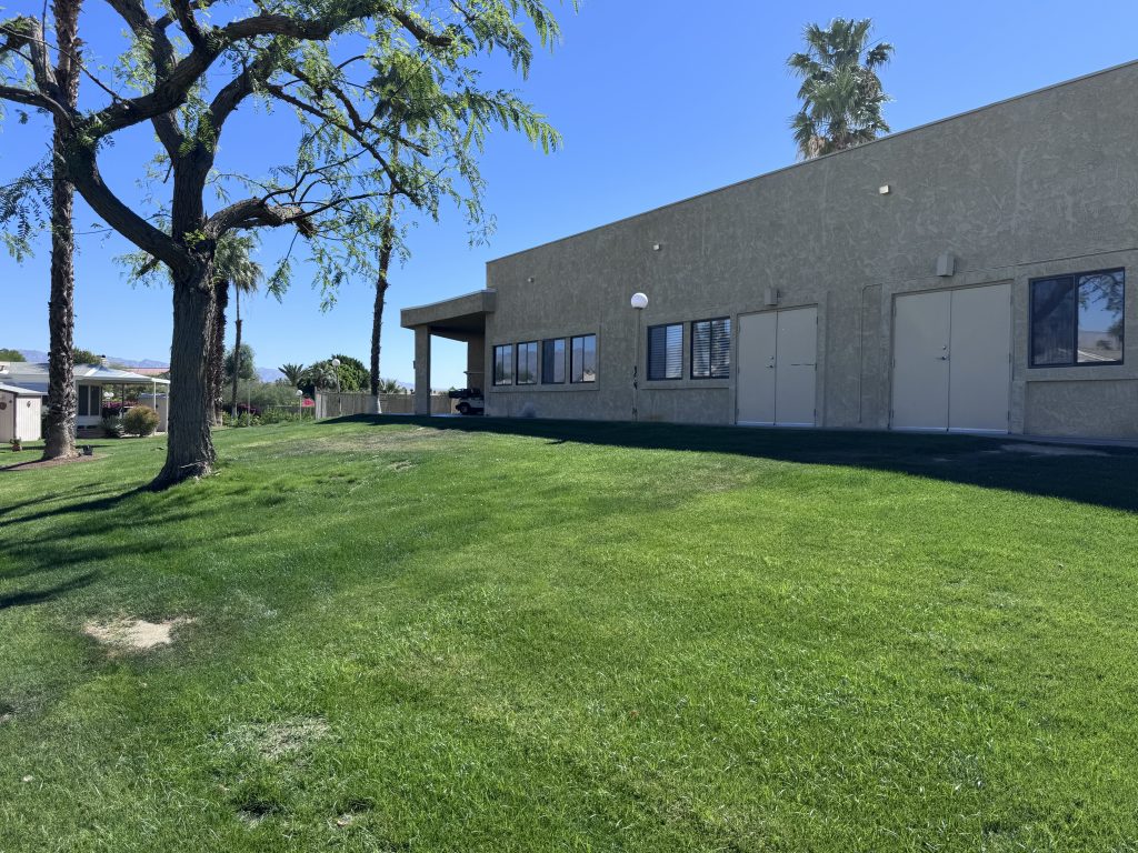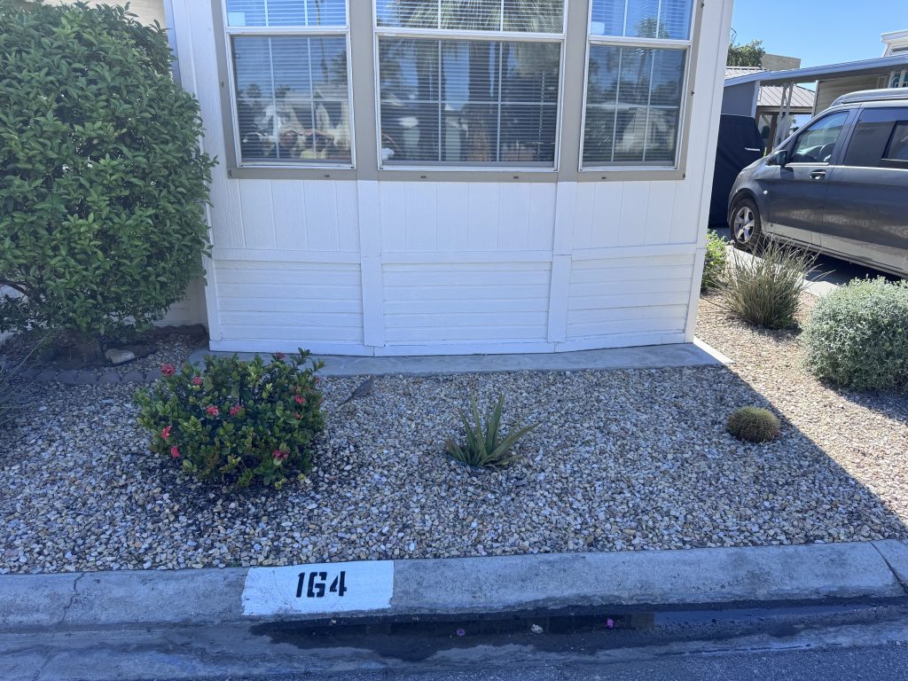 The large covered patio provides shade throughout the day and a separate patio with table, chairs and umbrella, that offers privacy with a nice hedge surrounding the perimeter and offers views of the mountains and one of the many ponds located through out the park. Both entry ways into the park model have been redone with composite deck material and a modern railing.