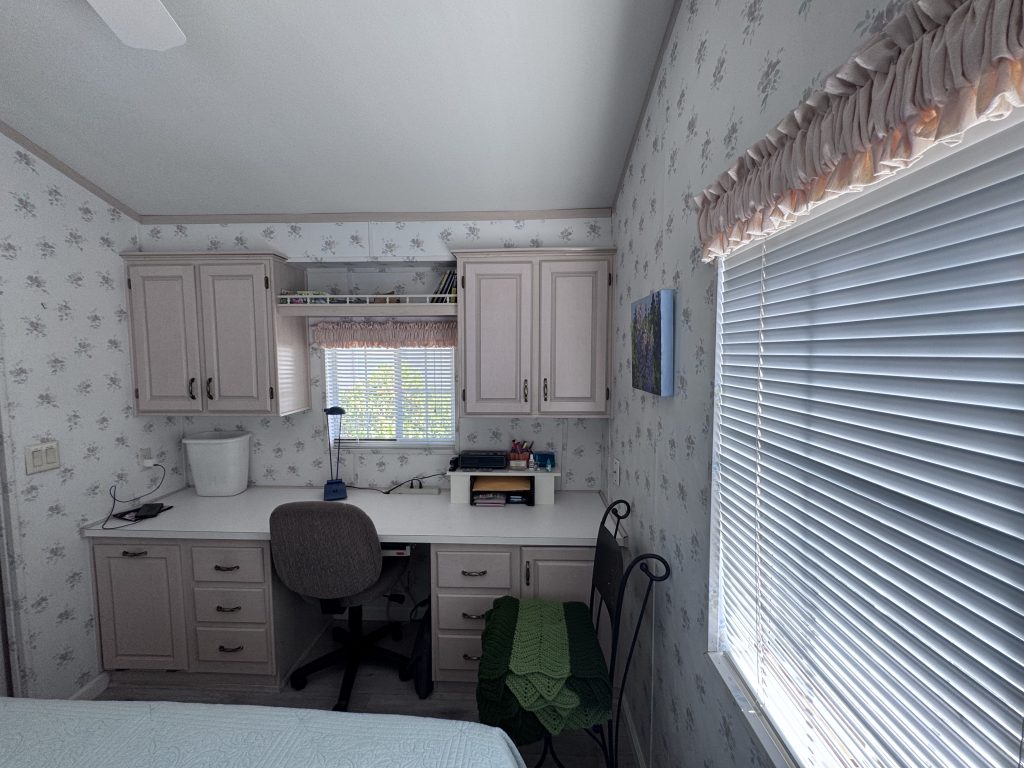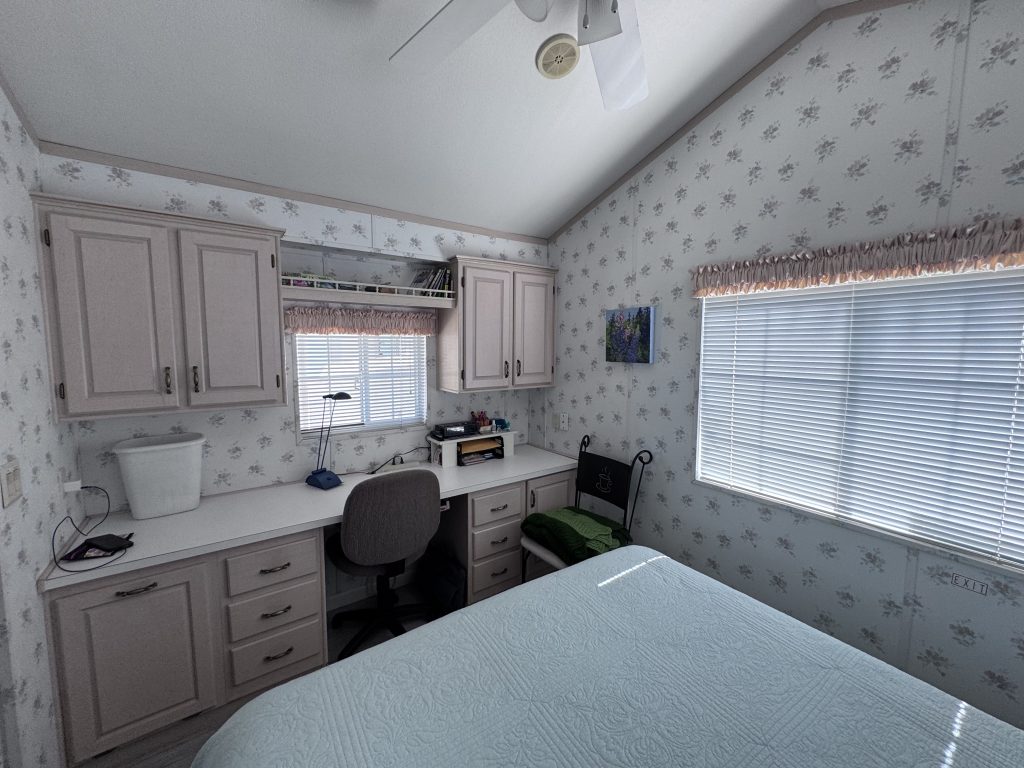 The bathroom features high ceilings and a much desired walk in shower. There are more high ceilings in the bedroom with lots of storage and closet space. The large vanity / desk space is an added bonus and provides even more storage.