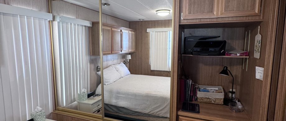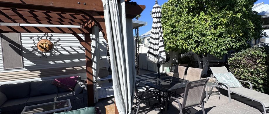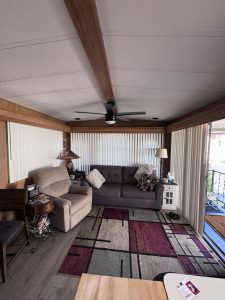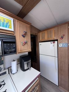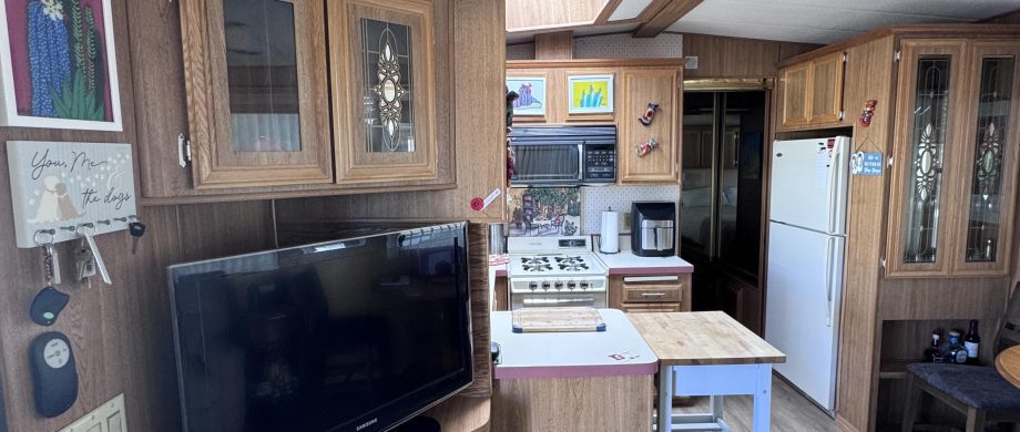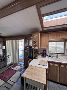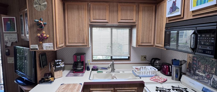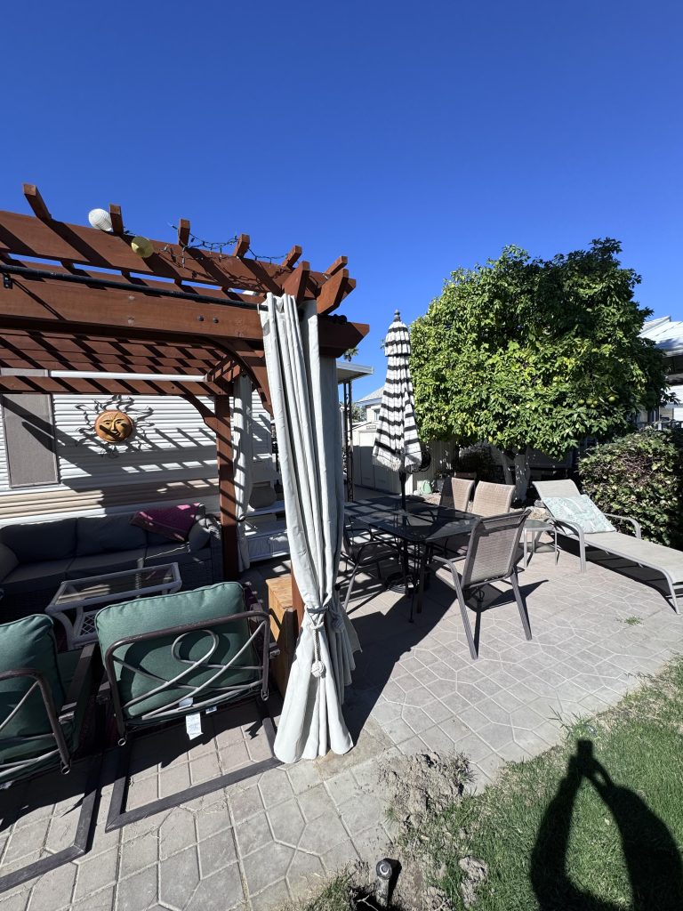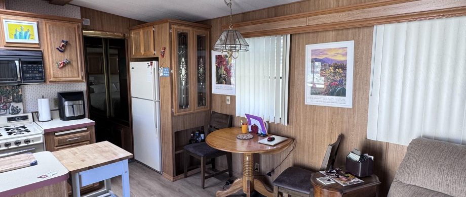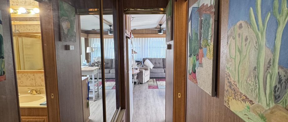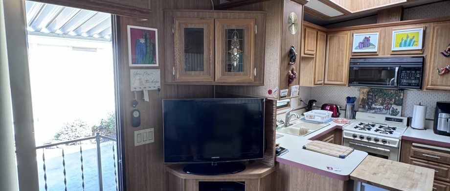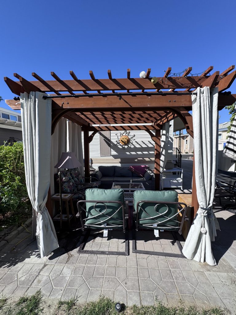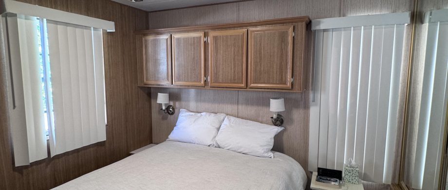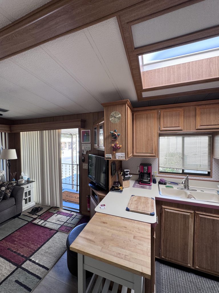If you are looking for a park model with lots of character and fantastic location, then this one is for you!! This park model is located on the water and offers great water views from the back patio and the beautiful pergola and seating arrangement.  Inside you will find the wood paneling is warm and inviting.  This park model comes fully furnished with everything you need to use as a rental property or for your own use.  The love seat converts into a bed if you need an extra sleeping space for those grand kids that will want to visit.  There is lots of storage space in the bedroom and hallway.