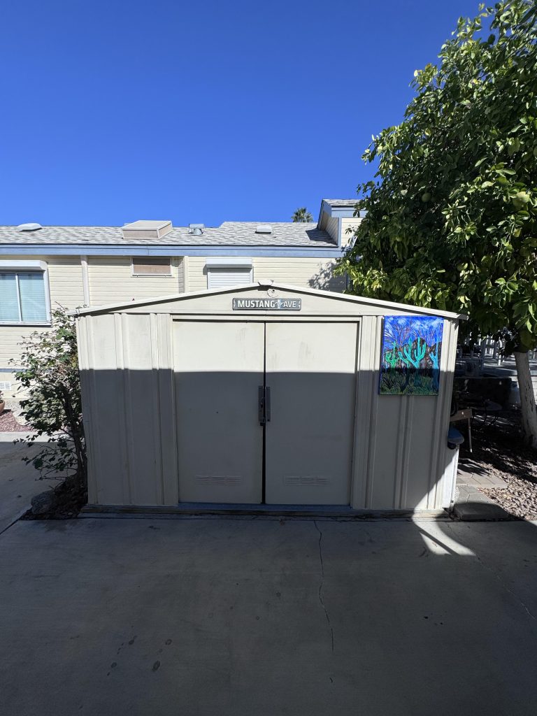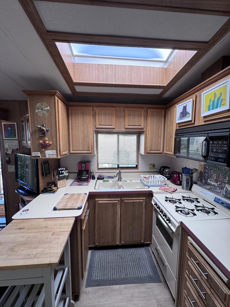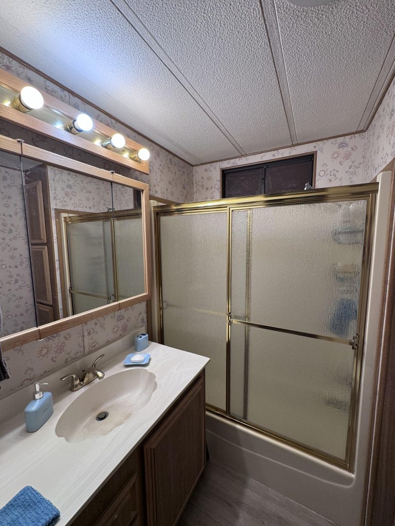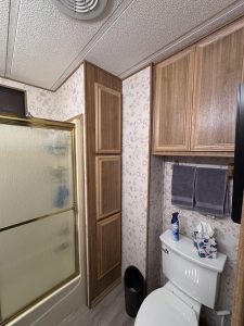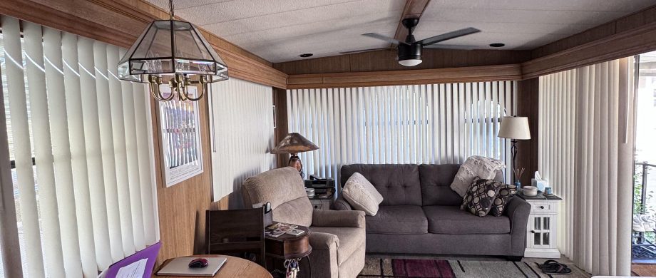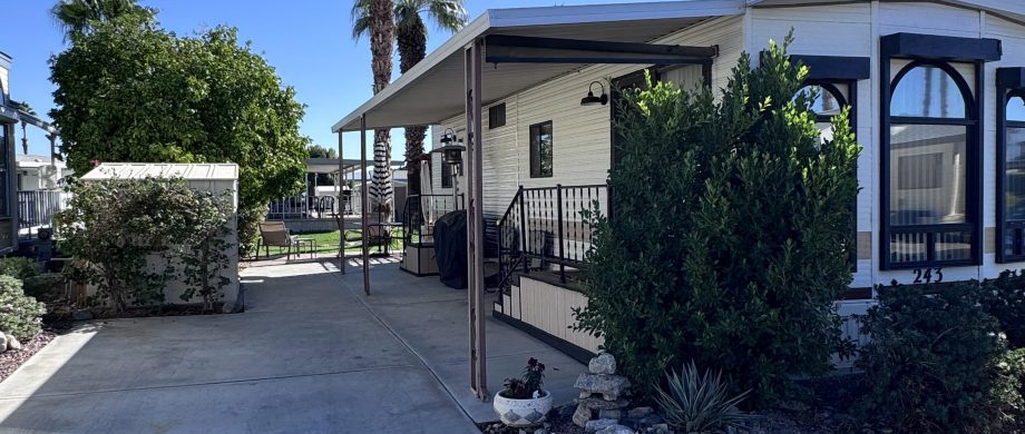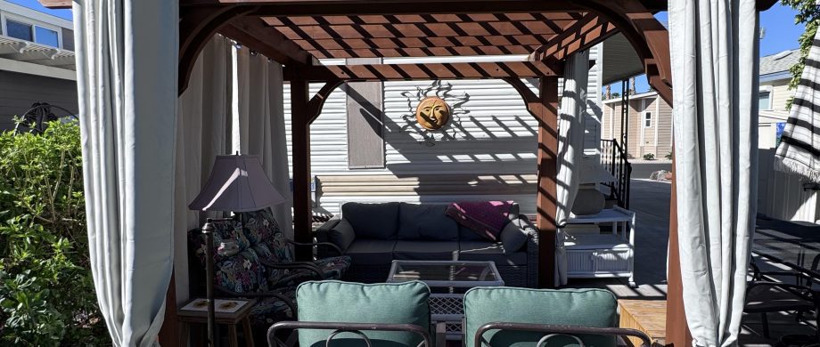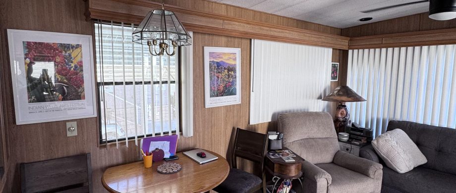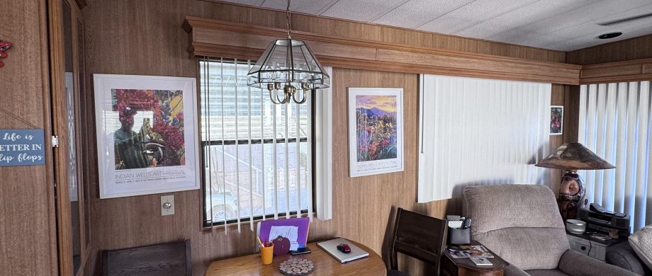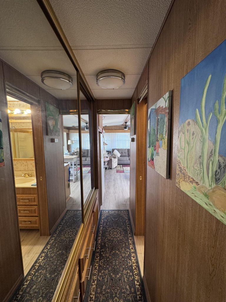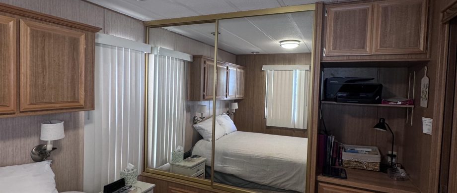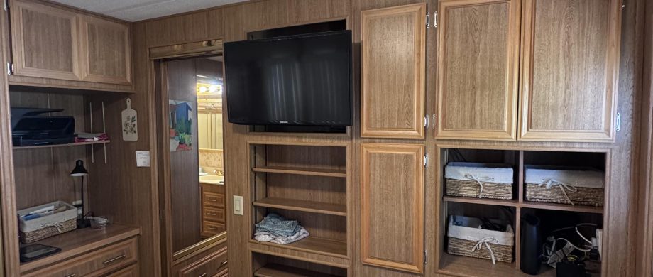 If you are looking for a park model with lots of character and fantastic location, then this one is for you!! This park model is located on the water and offers great water views from the back patio and the beautiful pergola and seating arrangement.  Inside you will find the wood paneling is warm and inviting.  This park model comes fully furnished with everything you need to use as a rental property or for your own use.  The love seat converts into a bed if you need an extra sleeping space for those grand kids that will want to visit.  There is lots of storage space in the bedroom and hallway.