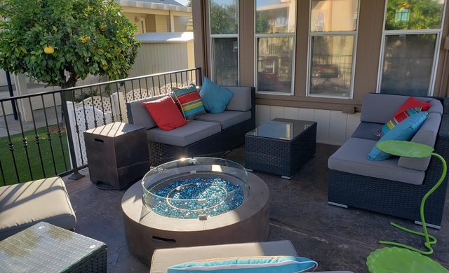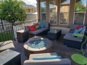 New 12 ft x 12 ft covered deck – with seating for 8 around new fire pit