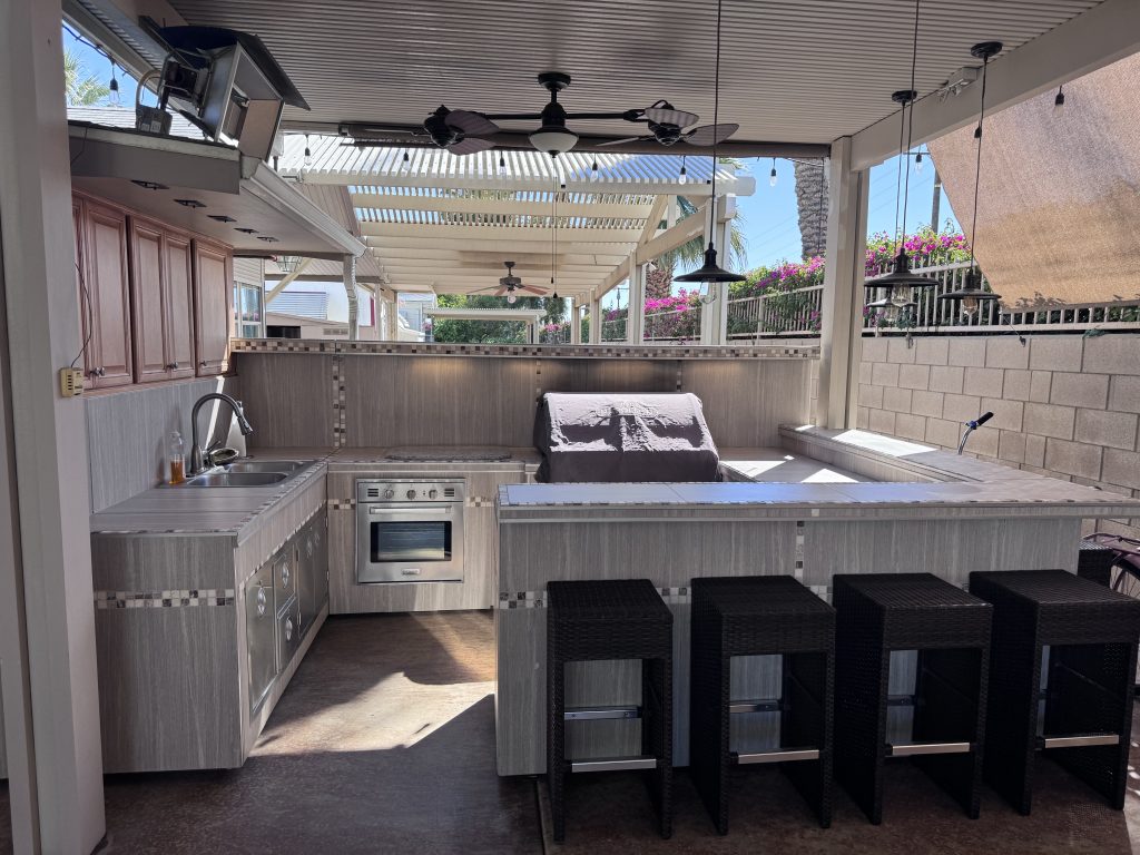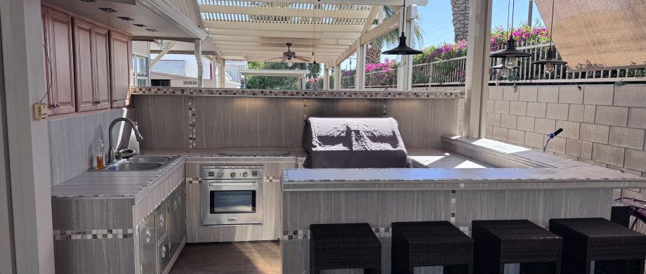 - Built-in BBQ grill, oven, gas burner & sink