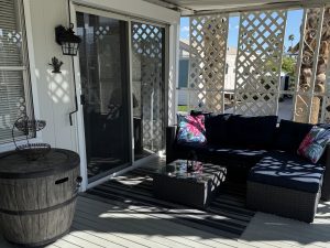 This extra clean, no smoking unit is fully equipped with smart TV, stereo unit, furnishings, appliances, kitchenware, linens, drapes and blinds. Storage shed, BBQ, lawn mower, propane tanks also included.