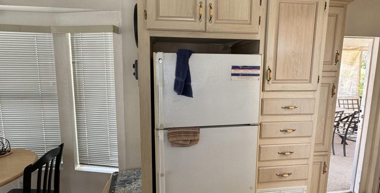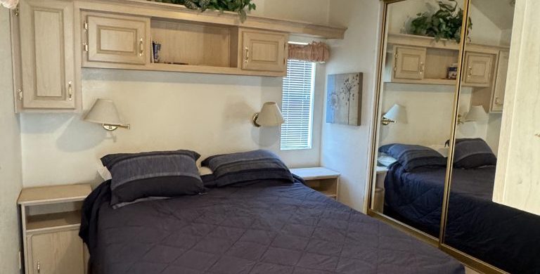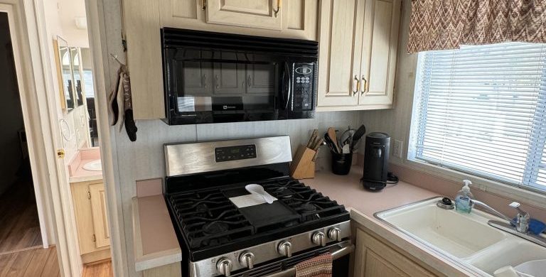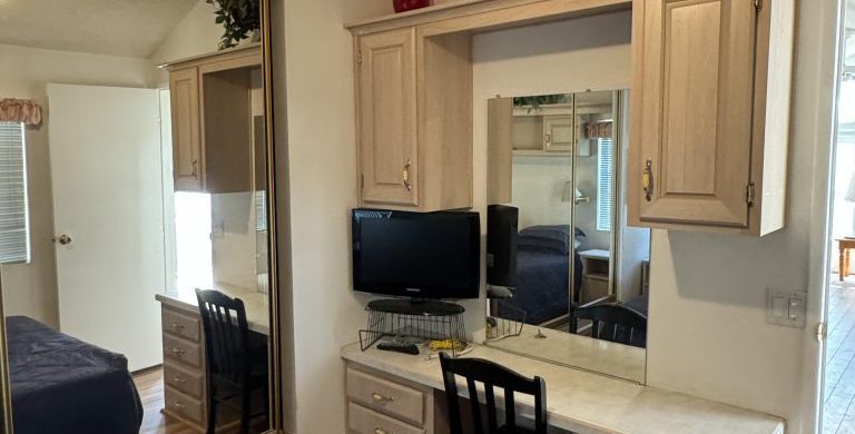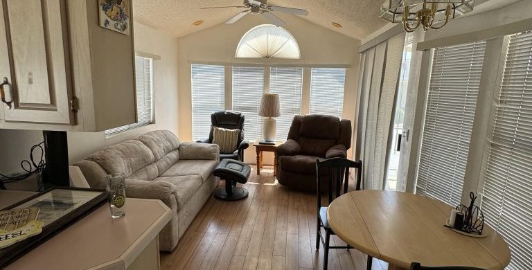 This park model is located on the desirable west wall providing a 65 ft. deep and private lot. The park model has a great location but needs some TLC. Great opportunity to put your own touch on it by adding some cosmetic upgrades.
