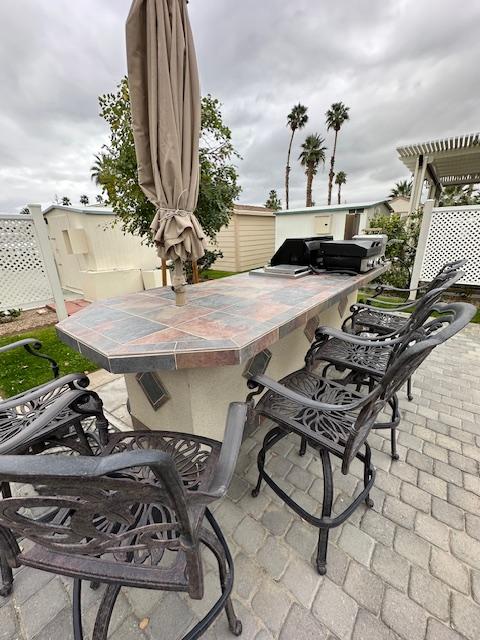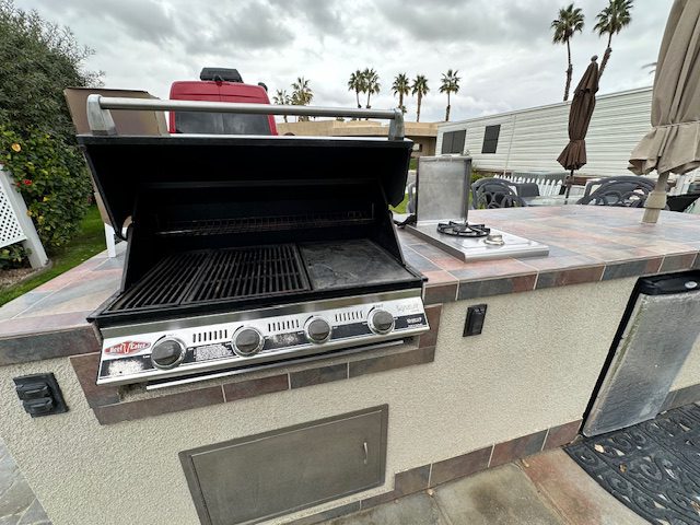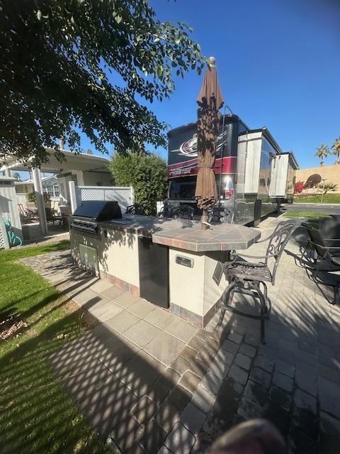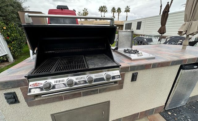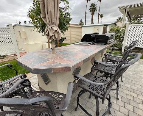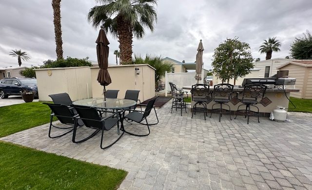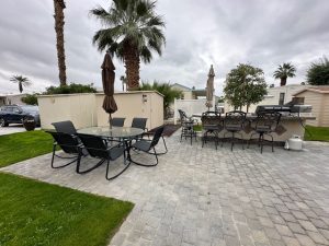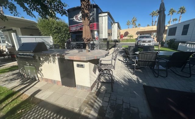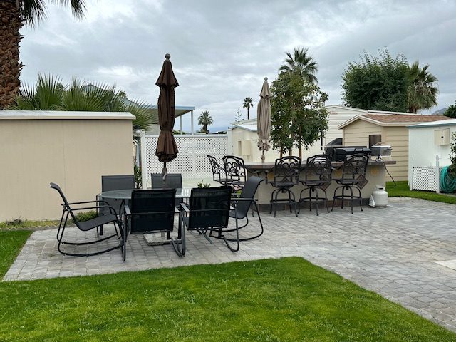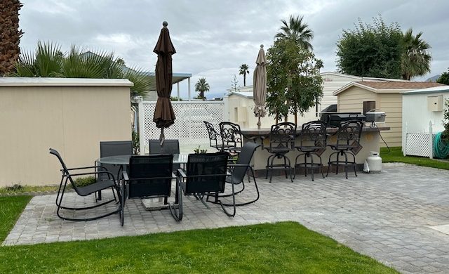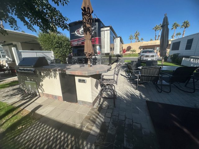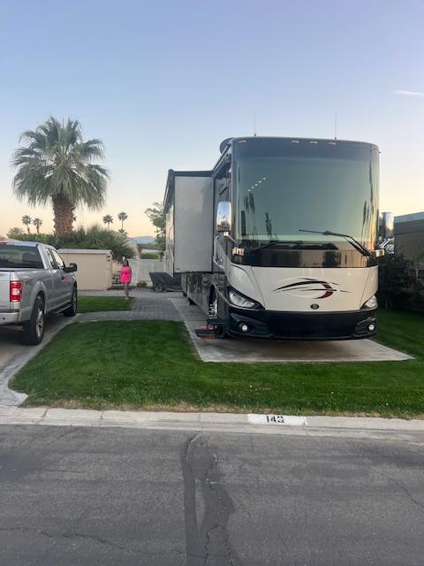 Lot # 143 is a beautiful approximately 70 foot deep lot with pavers surrounded by grass. Beautiful view of the mountains and lot will accommodate a 45 foot RV with parking area alongside for tow vehicle. It is located across the street from the clubhouse, large resort pool with showers and Jacuzzi. Lot includes built-in barbecue with refrigerator, patio furniture, including chairs, table, barstools and umbrellas and a storage shed. The park has two laundromats and two smaller pools ,Pickleball courts, pitch and putt 9 hole golf course and a putting green. No pets allowed.