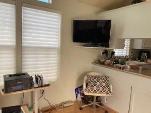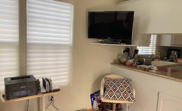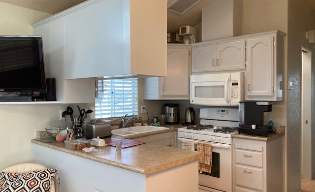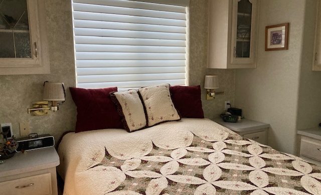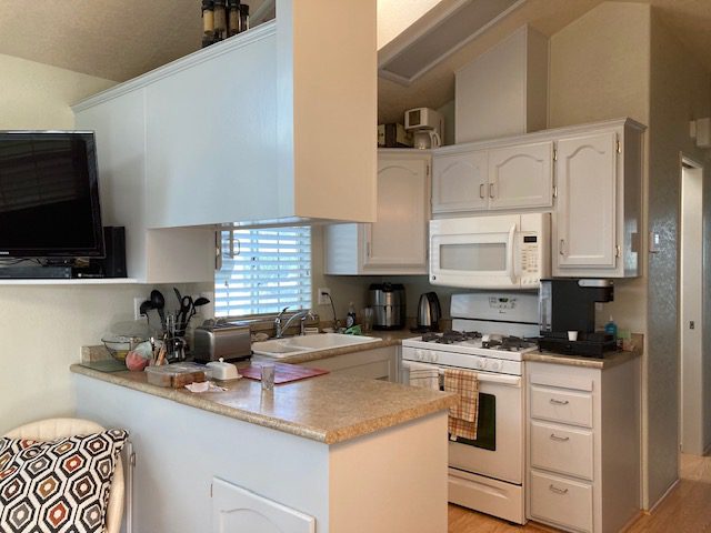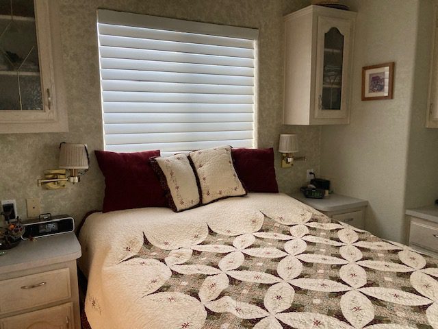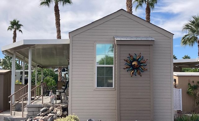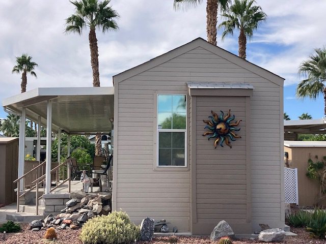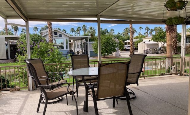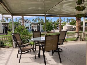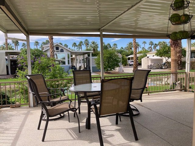 The deck is covered and patio is spacious for great entertaining. It has a full size fridge and stove, a brand new AC, and 2 TVs as well. The shed has a washer and drier, and a bar fridge. There are significant storage places throughout the park model. The property is fully landscaped with no grass to cut.