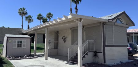 This beautiful 2006 Hallmark is perfectly located within short walking distance to the main clubhouse and one of the smaller pools, bathroom / shower and laundry facilities. This park model is tastefully decorated with furnishings and is move in ready. All interior and exterior furnishings are included in the sale.… Read More »